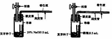 表示生物用于有氧呼吸的能源物 质不同。测定发芽种子呼吸商的装置如下图.