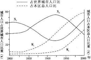 读图“发达地区与欠发达地区的城市人口和城市化水平对比”,完成10一11题。