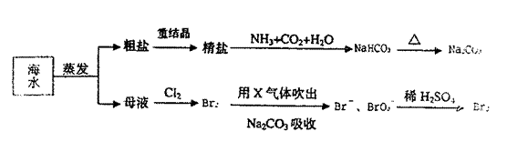 海水的综合利用可以制备非金属溴,还可以为氨碱法提供基本原料精盐。参照下列工艺图