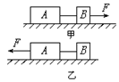 A、B两物体用细绳相连放在光滑水平桌面上,A的质量大于B的质量。现按图中甲、乙两种方式用相同大小的水平力F拉物体,则