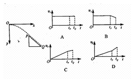 21.如图所示,水平抛出的物体,抵达斜面上端P处,其速度方向恰好沿着斜面方向,然后沿斜面无摩擦滑下,下列图象是描述物体沿x方向和y方向运动的速度--时间图象,其中正确反映运动的是 ( )