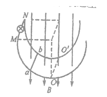 23.(16分)如图所示:半径为r、电阻不计的两个半圆形光滑金属导轨并列竖直放置,在轨道左上方端点M、N间接有阻值为R的小电珠,整个轨道处在磁感应强度为B的方向竖直向下的匀强磁场中,两导轨间距为L,现有一质量为m,电阻为R的金属棒ab从M、N处自由静止释放,经一定时间到达导轨最低点O、O′,此时速度为v。