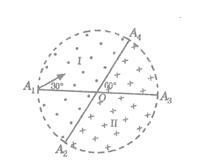 (19分)如图所示,在一个圆形区域内,两个方向相反且都垂直于纸面的匀强磁场分布在以直径A2A4为边界的两个半圆形区域I、II中,A2A4与A1A3的夹角为60°。一质量为m,带电量为+q的粒子以某一速度从Ⅰ区的边缘点A1处沿与A1A3成30°角的方向射入磁场,随后该粒子以垂直于A2A4的方向经过圆心O进入Ⅱ区,最后再从A4处射出磁场。已知该粒子从射入到射出磁场所用的时间为t,求Ⅰ区和Ⅱ区中的磁感应强度的大小。(忽略粒子重力)。