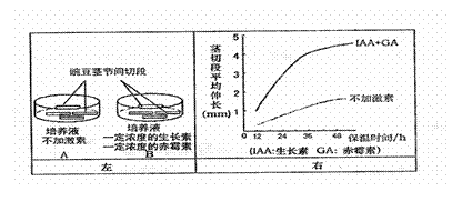 ②将两组豌豆茎切段分别放入两个标号为A、B的培养皿中(培养液成分见下图),在同样的条件下培养;