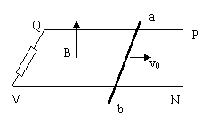 21、如图,光滑平行金属导轨PQMN水平固定在竖直向上的磁场中,磁感应强度为B,导轨宽度为L,QM之间接有阻值为R的电阻,质量为m的金属棒ab垂直导轨放置,并与导轨接触良好,ab以水平向右的初速度V0开始滑动,最后静止在导轨上.根据以上条件,在此过程中可求出的物理量有…