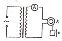 21.如图所示,一理想变压器原、副线圈的匝数比为n:1.原线圈接正弦交变电压U,副线 圈接一个交流电流表和-个电动机.电动机线圈电阻为R,当变压器的输入端接通电源,电流表的示数为I,电动机带动一质量为m的重物以速度v匀速上升,则下列判断正确的是