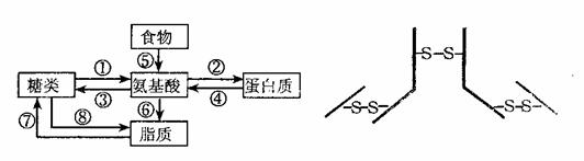 (4)糖尿病患者不宜多吃富含蛋白质的食物,其主要原因是 。对于大多数人,若多吃糖类食物且运动少,则容易发胖,其主要原因是 。在与糖代谢直接相关的激素中.糖尿病患者合成较少的那种激素,具有抑制图中序号 所示过程的作用。