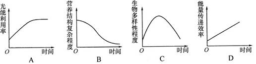 3.退耕还林是我国生态环境保护的一项重要工程。一块退耕的农田因未及时补种树木,若干年后逐渐演变成了一片杂草丛生的灌木林,成为了一个相对稳定的生态系统。下列关于这片退耕田变化趋势的曲线表达正确的是( )