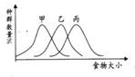 41右下图表示某一生态系统中,取食方式为吞食的三个物种随食物颗粒大小而产生的种群数量分布。下列对此图的分析,正确的是