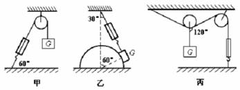 如图所示,弹簧秤、绳和滑轮的重力不计,摩擦力不计,物体重量都是G.在甲、乙、丙三种情况下,弹簧的读数分别是F1、F2、F3,则
