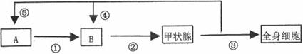 (1)结构A是________,甲状腺分泌的激素通过________运输到达全身细胞,过程①-⑤中属于反馈调节的是______________ (填序号)。