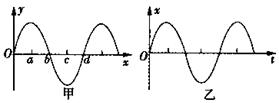 一列简谐波沿x轴正方向传播,某时刻波形图如图甲所示,a、b、c、d是波传播方向上的四个振动质点的平衡位置.如再过