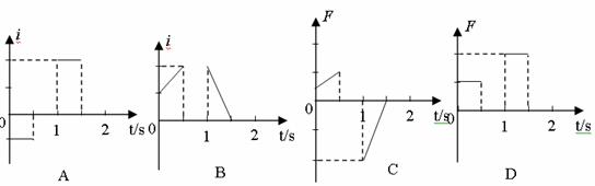 19、如图所示,位于同一水平面内的,两根平行的光滑金属导轨,处在匀强磁场中,磁场方向垂直于导轨所在平面,导轨的一端与一电阻相连,具有一定质量的金属杆ab放在导轨上并与导轨垂直,当磁场的磁感应强度B随时间t如图变化时(规定垂直纸面向里的磁场方向为正),用一平行于导轨的力F向左或向右拉杆ab,使它保持静止。若规定由a→b方向通过杆的感应电流为正,向右的拉力为正,则能反映通过杆的感应电流I和拉力F随时间t变化的图线是( )