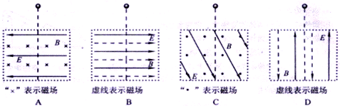 如图所示,虚线框中存在匀强电场E和匀强磁场B,它们相互正交或平行.有一个带负电的小球从该复合场上方的某一高度处自由落下,那么,带电小球可能沿直线通过下列的哪些复合场区域