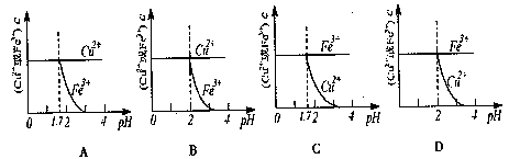 15.已知的KSP[Cu(OH)2]=2.2×10-20、KSP[Fe(OH)3]=4.0×10-38,Cu2+和Fe3+完全以氢氧化物沉淀时的pH分别为:6.7和3.2。现在向pH=0、浓度均为0.04mol·L-1的Cu2+、Fe3+溶液中加入某一固体,以中和H+调节pH(设溶液体积不变),该过程中Cu2+、Fe3+的浓度与pH关系正确的是 ( )
