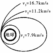 19.如图是地球三个宇宙速度示意图,当卫星绕地球作椭