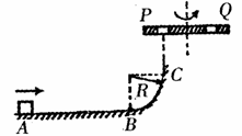 圆弧BC,AB=5R。在C点正上方有一离C点高度也为R的旋转平台,沿平台直径方向开有两个离轴心距离相等的小孔P、Q,旋转时两孔均能达到C点的正上方。若滑块滑过C点后竖直向上穿过P孔,又恰能从Q孔落下,则平台转动的角速度ω应满足什么条件?(重力加速度为g)