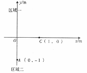 =2×108C/kg的正电荷从坐标为(0,-l)的A点处由静止释放,电荷以一定的速度沿直线AC运动并从坐标为(1,0)的C点第一次经x轴进入区域一,经过一段时间,从坐标原点D再次回到区域二。