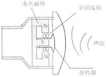 19.唱卡拉OK用的话筒内有将声音信号转变为电信号的传感器,其中一种是动圈式的,右图是该传感器的构造原理图.它的工作原理是,在弹性膜的后面粘接一个轻小的金属线圈,线圈处于永久磁体的磁场之中,当声波使膜片前后振动时,就将声音信号转变为电信号。下列说法正确的是