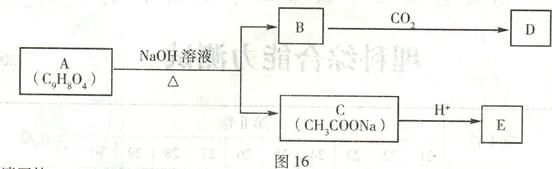 (16分)A为药用有机物,A的转化关系如图16所示。已知A在一定条件下能跟醇发生酯化反应,A分子中苯环上的两个取代基连在相邻的碳原子上,D能跟