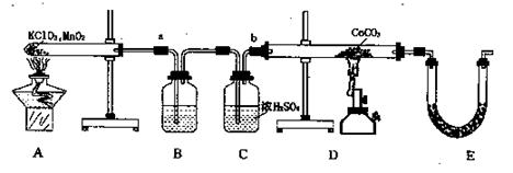 ⑹ CoCO3完全转化为褐色的CoxOy后,称得U 型管E 的质量增加8.8g ,D 装置玻璃管内残留物的质最为16.6g ,通过计算求CoxOy中x︰y =__________。