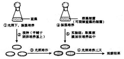 Ⅱ(14分)水华可因蓝藻爆发所致。科研人员尝试利用某种细菌限制蓝藻数量,相关实验的示意图如下。图中①-⑥表示实验步骤。