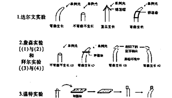 I(12分)、下图是利用某些单子叶植物幼苗完成的几组经典实验: