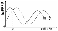 5.右图表示某生态系统中甲、乙两种群在一段时间内数量变化情况。下列有关叙述错误的是