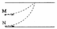 19.如图所示,质量相同的两个带电粒子M、N,以相同的速度沿垂直于电场方向同时射入两平行板间的匀强电场中,M从两板正中央射入,N从下极板边缘处射入,它们最后打在上极板的同一点上。不计粒子的重力,则从开始射入到打到上板的过程中 ( )