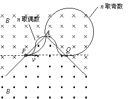 当n取偶数时,微粒从P到Q过程中圆心角的总和为: