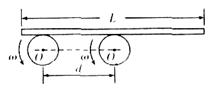 =8.0 rad/s匀速同向转动,两轮的转动轴在同一水平面上,相互平行,距离d =1.6 m . 一块均匀木板条轻轻平放在两轮上,开始时木板条的重心恰好在右轮的正上方. 已知木板条的长度L>2d,木板条与轮子间的动摩擦因数μ=0.16