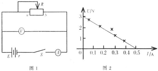 ①为扩大电流表量程,必须知道电流表电阻,可用图1所示电路测量电流表A内阻。图2中的5个点表示实验中测得的5组电流