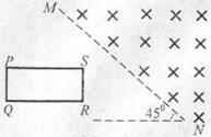 向垂直线框平面,MN直线与水平方向成45°角。从S点刚进磁场开