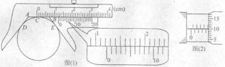 如图(1)中的D、C、E。如图(1)所示卡尺的读数为 mm,被测圆形工件的直径为