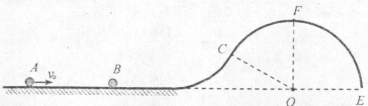 正碰,碰后B球运动到圆弧轨道的最高点F时,对轨道的压力恰好为零。试求碰撞后