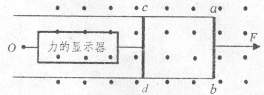 ,且接触始终良好。cd棒通过不可伸长的细线与一个固定在O点的力的显示器相连,始终处于静止状态。现在让框架由静止开始在水平恒定拉力F的作用下(F是未知数),向右做加速运动,设最大静摩擦力和滑动摩擦力相等。最终框架匀速运动时力的显示器的读数为2