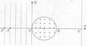 (2)若将圆形磁场区以O点为轴,整体逆时针将OB缓慢转过90°(与y轴重合),求