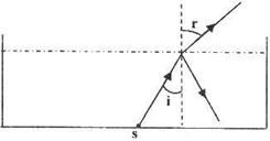 一足够人的水池内盛有某种透明液体,液体的深度为H,在水池的底部中央放一点光源,其中一条光线以30°入射角射到液体与空气的界面上,它的反射光线与折射光线的夹角为105°,如图.求: