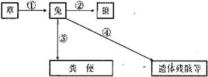 C.图中箭头③④的能量包含在箭头①中,即兔同化的能量中