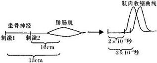 。刺激点离肌肉中心距离分别为13厘米和10厘米。坐骨神经冲动的传导速度是____________