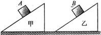如图所示,甲、乙两个斜面质量相同,倾角相同,斜面的粗糙程度不同,都放在水平地面上始终静止不动.两个小物体A、B质量相同,小物体