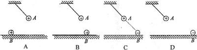 20.下面各图中A球系在绝缘细线的下端,B球固定在绝缘平面上,它们带电的种类以及位置已在图中标出,A球能保持静止的是