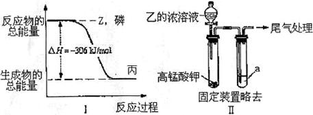 (2)磷在Z气体中燃烧可生成液态丙分子,也可生成固态丁分子。已知丙分子中各原子最外层均是8电子结构,丙的电子式是_________。磷单质和Z单质反应生成1mol丙时,反应过程与能量变化如图I所示,该反应的热化学方程式是__________。