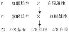 Ⅱ(8分)果蝇中野生型的眼色的色素的产生必须有显性基因A。第二个独立遗传的显性基因B,使得色素呈现紫色,但它处于隐性地位使眼色为红色。不产生色素的个体的眼睛呈白色。两个纯系杂交,结果如图: