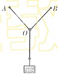 某同学在家中尝试验证平行四边形定则,他找到三条相同的橡皮筋(遵循胡克定律)和若干小事物,以及刻度尺、三角板、铅笔、细绳、白纸、钉字,设计了如下实验:将两条橡皮筋的一端分别在墙上的两个钉子A、B上,另一端与第二条橡皮筋连接,结点为O,将第三条橡皮筋的另一端通过细胞挂一重物。