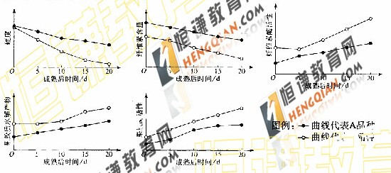 桃果实成熟后,如果软化快,耐贮就会差。下图表示常温下A、B两个品种桃果实成熟后硬度变化的实。
