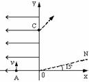,电子经过磁场后恰好垂直通过第一象限内与x轴正方向成15°角的射线ON(已知电子的质量为m,电荷量为e,不考虑粒子的重力和粒子之间的相互作用)。求: