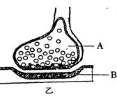 (1)甲图中a表示的结构是 ,乙图是甲图中 (填字母)的亚显微结构放大模式图,乙图中的B是下一个神经元的 (2分)。