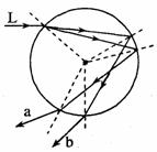 2009年初春北方出现历史罕见的旱情,不少地区采用人工降雨的方式来抗旱保苗。若某次降雨后天空出现了虹,如图所示虹是由阳光射入雨滴(视为球形)后,经一次反射和再次折射而产生的色散形成的,现有白光束L由图示方向射入雨滴,a、b是经过反射和折射后的其中两条出射光线,下列说法中正确的是