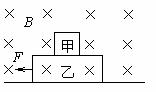 如图所示,甲带正电,乙是不带电的绝缘物块,甲乙叠放在一起,置于粗糙的水平地板上,地板上方空间有垂直纸面向里的匀强磁场,现用一水平恒力F拉乙物块,使甲、乙无相对滑动一起向左加速运动,在加速运动阶段